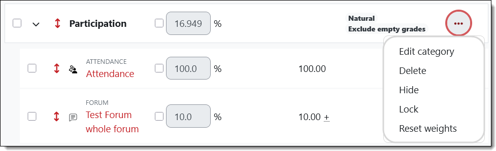You’ll find a few changes in the Gradebook setup page. Instead of having buttons for adding an item or category at the top of the page, an extra click is required to reach those options (silly Moodle!).